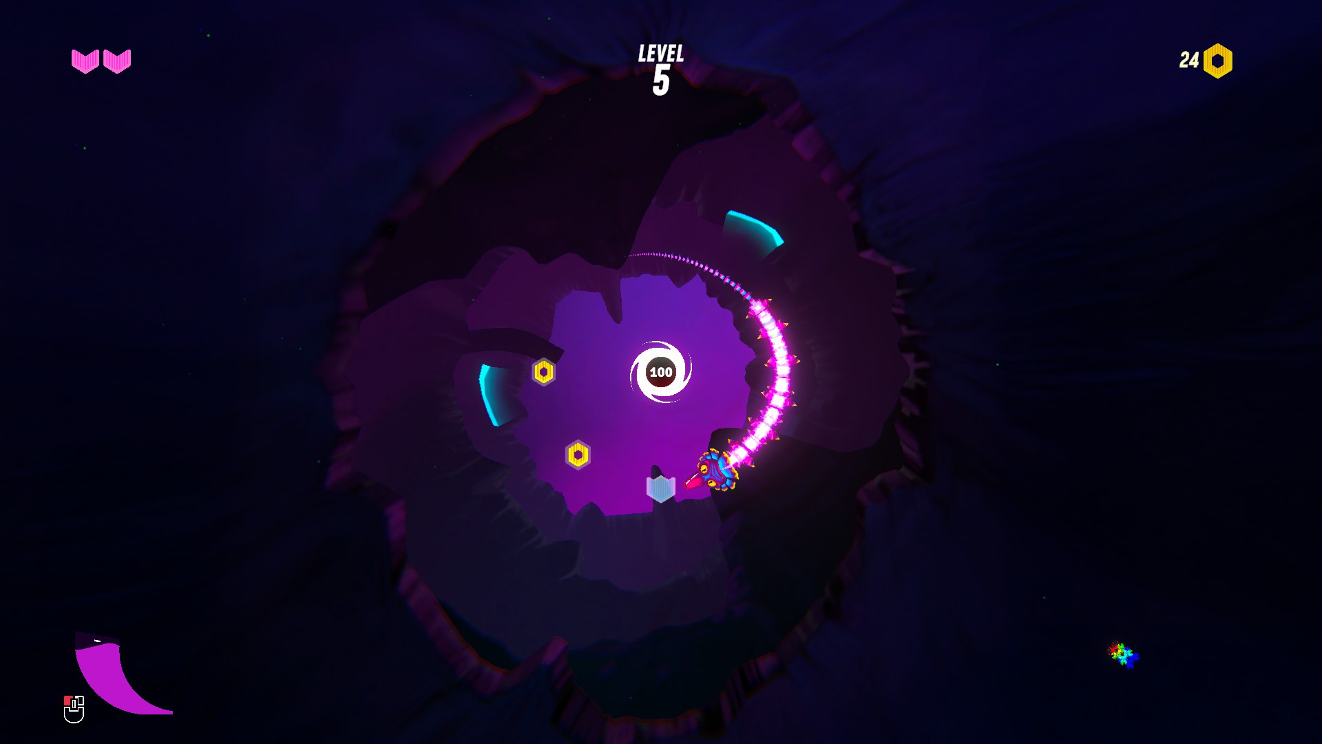 OROBOROS’ta korumanız gereken şey kafanız. Yani kuyruğunuzdan hasar almıyorsunuz. Benim bunu keşfetmem biraz zaman aldı. Snake yüzünden travmalı bir nesil var burada. Üstelik oyun da diyor kafanı koru diye ama işte… Bunun farkında olmak da şu sebepten önemli: Eğer kuyruğunuzu eciş bücüş edene kadar toplarsanız kendi kuyruğunuzu yiyemezsiniz ve doğal olarak da aynı bölümle cebelleşip durursunuz.