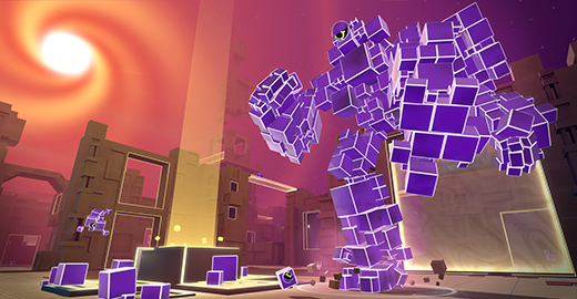 Konsept şu: Oyuna havada süzülen cisim olarak başlıyorsunuz. Yapmanız gereken iki şey var: Haritaya serpiştirilmiş küpleri toplayarak kütle olarak büyümek ve düşmanları öldürmek. Küpleri toplayarak o anki şeklinize seviye atlatmaya çalışıyorsunuz. İkinci seviyede küçücük bir küp olarak etrafta gezerken, son seviyeye geldiğinizde bina büyüklüğünde bir küp yaratığa dönüşüyorsunuz. Tabii bu sırada diğer oyuncuların eli armut toplamıyor. Bir yandan küpleri ararken, diğer yandan da diğer oyuncuları öldürmeye çalışıyorsunuz. İşte oyunun düz olmayan ilerleme yapısı burada devreye giriyor: Küp hâlinde ölürseniz, en başa, havada süzülen cisim hâline dönüyorsunuz. Sizi öldüren de seviye atlıyor. Sonra siz büyüyorsunuz, başkasını öldürüyorsunuz, o küçülüyor, siz büyüyorsunuz.