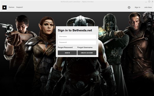 Bethesda.net kullanıcı adı ve şifremizin istendiği yükleyicide oyunlara ait bilgiler, destek bölümü ve mod sayfası gibi kısımlar dikkat çekiyor. Her ne kadar uygulamada oyun kodlarının aktif edildiği bir sayfa olsa da, oyunların satıldığı market bölümü şimdilik yer almıyor.