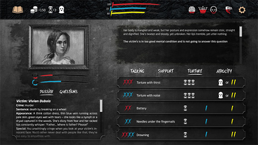 Oyunda canlandırdığımız kişi yalnızca bir cellat değil, aynı zamanda işkenceciyiz. Amacımız idam cezasına çarptırılmış mahkumlardan imzalı itiraflarını almak ve bunu yapmak için de elimizin altında pek çok alet edavat olacak. Sanırım kafanızda kullanabileceğimiz şeylere dair bir takım görüntüler canlanmıştır. Mahkumlara suçlarını itiraf ettirmek için istersek onları aç bırakabilecek, istersek kerpetenle tırnaklarını çekebileceğiz. Ya da belki o an vicdanımız baskın gelecek ve "yapma etme kardeşim, imzala şu kağıdı da işimize bakalım" diyerek güzel yolu seçmeye çalışacağız. Mahkum güzellikten anlamıyor mu? E o zaman parmaklarını veya gözlerini kaybedince şikayet etmeyecek bir zahmet.