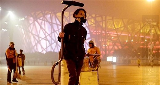 Brother Nut isimli sanatçı Çin'in kirli havasına dikkat çekmek amacı ile 100 gün boyunca Beijing sokaklarında elektrikli süpürge ile dolaştı.
