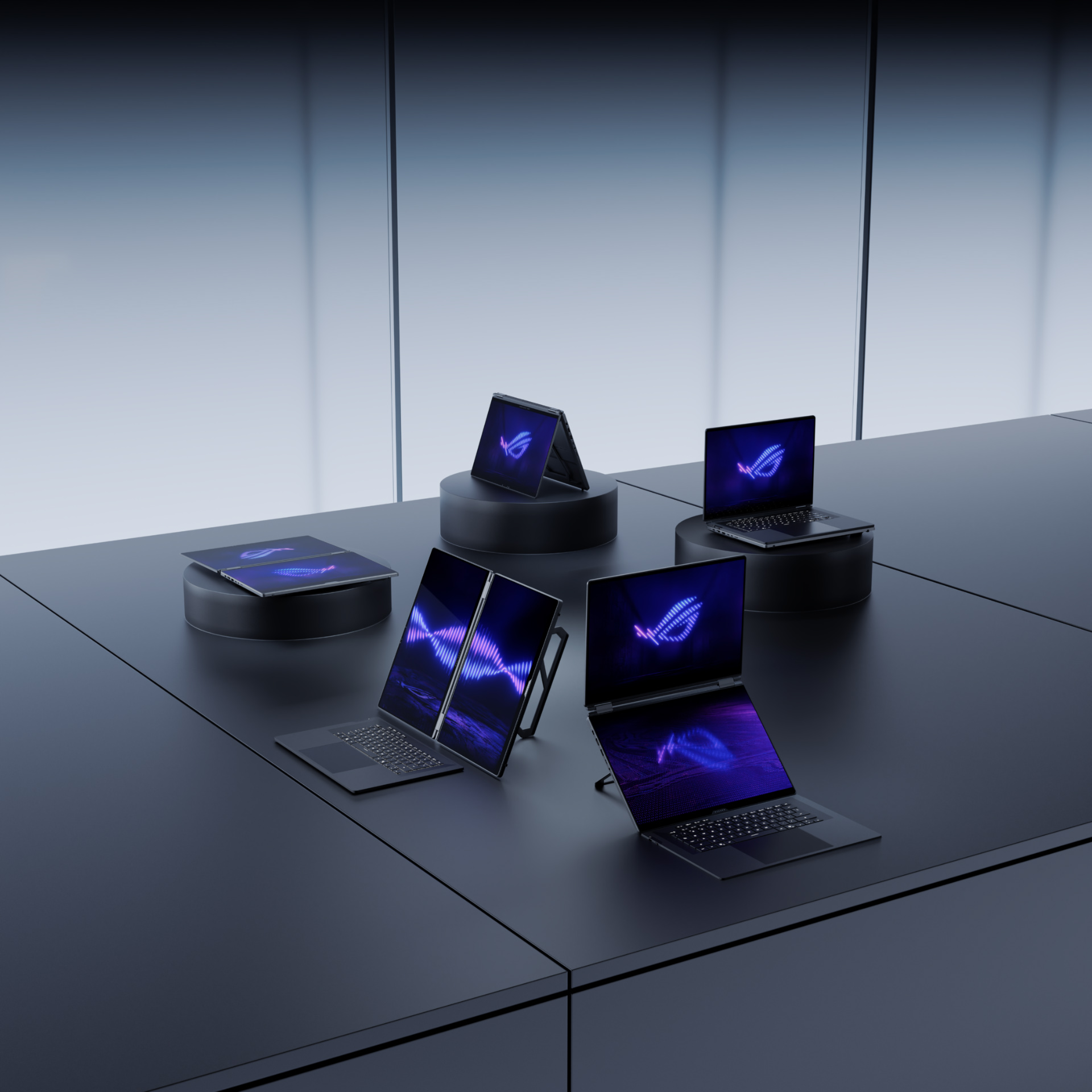Zephyrus Duo, taşınabilir kişisel iş istasyonu kavramını yeniden hayal ediyor. Cihaz, toplamda 21 inçlik ekran alanına ulaşan iki adet nefes kesici 3K ROG Nebula HDR OLED dokunmatik ekrana sahip.