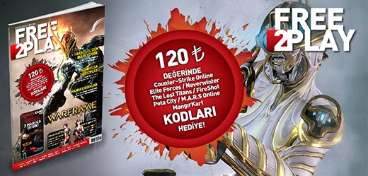 Birbirinden güzel kodları sizler için bir araya getiren Free2Play ekibinden tam 120 TL değerinde kod dergi ile hediye. Counter-Strike Online, Neverwinter, Elite Forces, The Lost Titans, M.A.R.S Online, FireShot, Peta City ve MangırKart kodları ile oyunlarda birçok içeriğe ulaşabileceksiniz.