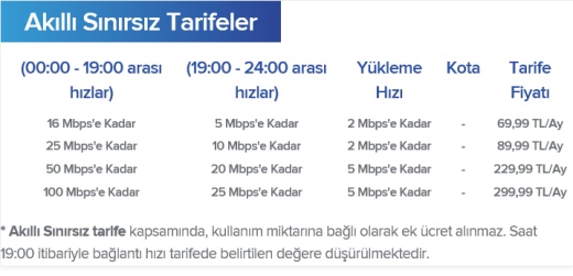 Buna göre 16 Mbps internet kullanıyorsanız 19:00 - 00:00 saatleri arasında hızınız 5 Mbps'ye çekiliyor, günün kalanında ise 16 Mbps'ye geri dönüyorsunuz. Bir nevi AKK'yı günlük bazda uygulamak gibi bir şey yani.