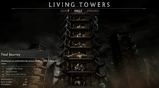 Temelde Challenge Tower ile aynı özelliklere sahip olan bu yeni mod oyunculara yapay zekâyla giderek artan zorluk seviyelerinde dövüşme imkânı sunacak. Hem bir dizi dövüş gerçekleştireceğiz hem de bu esnada bazı başarımları yerine getirmeye çalışacağız. Atıyorum, rakibine 5 kez uçan tekme at ya da düşmanından okkalı bir dayak yemeden önce üç kere nanik yap gibi gibi… Başarımları yerine getirdikçe kulenin daha üst seviyelerine çıkacak ve Koin kazanacağız.