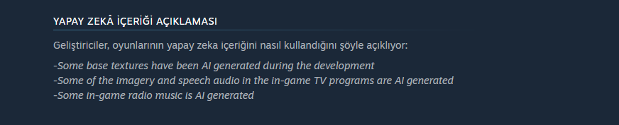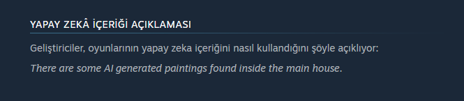 Sanırım AI içeriklerin olması, oyun iyi olduktan sonra sıkıntı yaratmıyor. Yorumu size bırakıyorum.