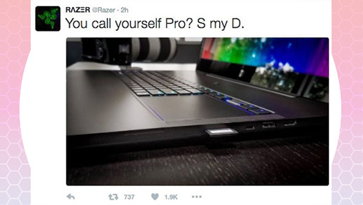 Yeni Macbook Pro'da normal dizüstü bilgisayarlarda olmasına alıştığımız SD kart girişinin olmaması çeşitli eleştiriler almıştı. Razer güya buna esprili bir karşılık vererek kendi bilgisayarlarındaki SD kart girişini ön plana çıkarmak isteyerek yukarıda gördüğünüz tweeti attı. "Kendine Pro mu diyorsun" ile başlayan mesajdaki "S my D"nin anlamını sanırım tahmin edebilirsiniz.