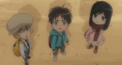 Titan Junior High adlı ortaokulda geçen animede Eren ve arkadaşlarının öğretmenlerin, derslerin, sınavların ve devlerin olduğu zorlu ortaokul hayatına tanıklık edeceğiz. Şu kırmızı dev titan var ya, Eren’in öğle yemeğini yiyormuş. Bu tarz olaylar olacak. Ciddi bir hikâye bulmayı beklemeyin, zaten buna gerek de yok. Chibi tarzı, şapşal ve eğlenceli bir anime izleyeceğiz.
