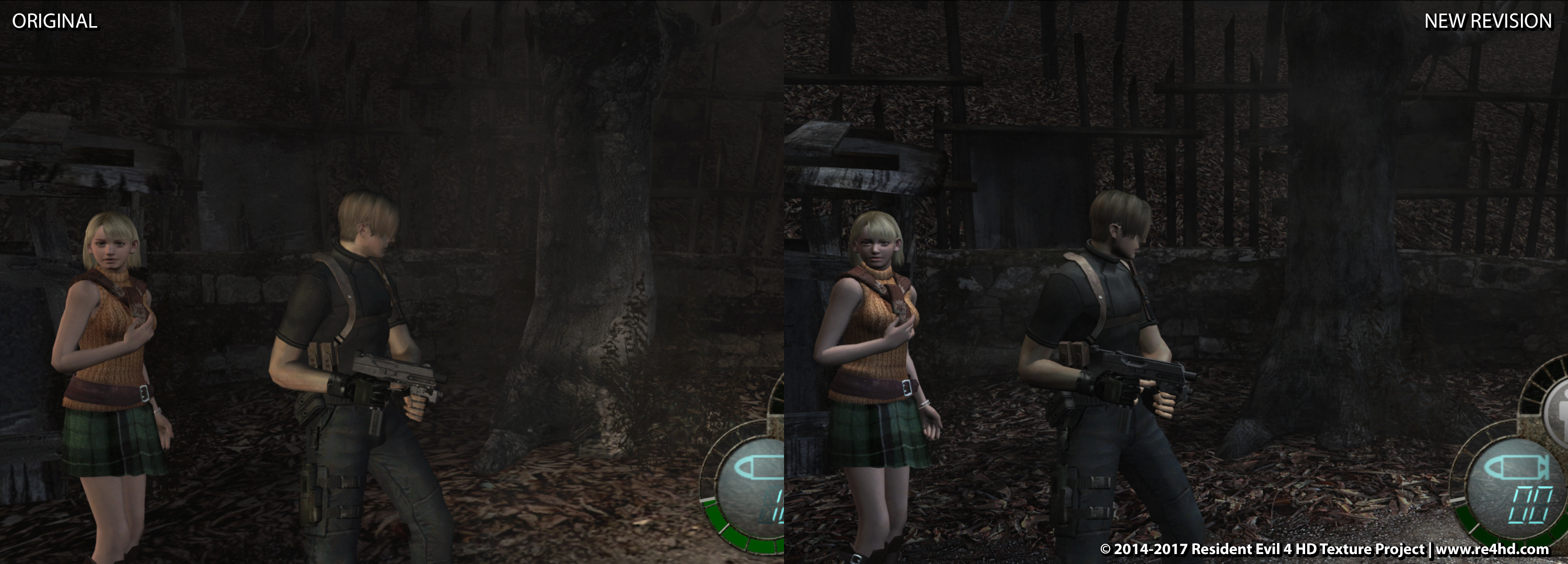 Ekipten Albert bu yeni güncellemede gece aydınlatmalarının ve bu aydınlatmaların karakter modelleri üzerindeki etkilerinin tamamen elden geçirildiğini söylemiş. Ayrıca Leon'ın el fenerinden çıkan ışık da yenilenenler arasında. Aşağıdaki birkaç karşılaştırma resminden de görebileceğiniz gibi orijinal oyundaki kırmızı ağırlıklı tonlar yerine biraz daha soğuk renkler ön plana çıkarılmış ki bu da atmosfere önemli katkı sağlamış.