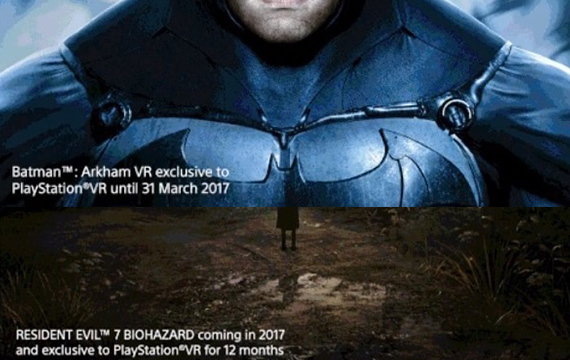 Devamını okuSony’nin sanal gerçeklik gözlüğü Playstation VR’ın çıkışına sayılı günler kala, Facebook’ta paylaşılan bir resim sayesinde bazı oyunların PSVR’a özel olmayacağı belli oldu. Resident Evil 7 çıktığı günden itibaren bir yıl boyunca, Batman: Arkham VR ise 31 Mart 2017 tarihine kadar Playstation VR’a özel olarak kalacak. Bu da demek oluyor ki, Resident Evil 7 ve Batman: Arkham VR’ı belli bir süre sonra diğer sanal gerçeklik gözlükleri ile oynayabileceğiz.