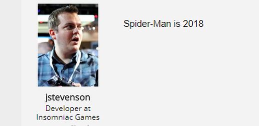 Insomniac'ın Topluluk Yöneticisi James Stevenson, ResetERA'da Spider-Man'in hâlâ 2018 oyunu olduğunu duyurdu.