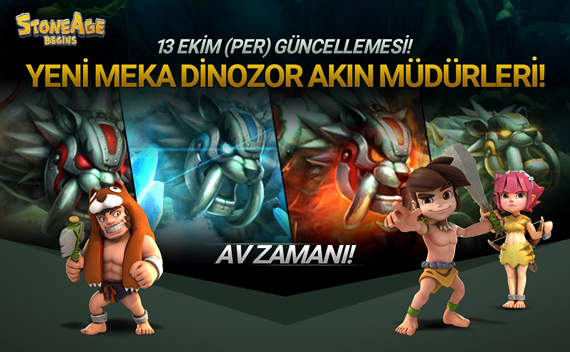 Stone Age Begins’in yeni güncellemesiyle birlikte oyuncular, dinozor geliştirmenin yanı sıra, son trendlerle macera dolu bir RPG’nin tadına varacaklar. Oyuncular; yüksek kalite 3 boyutlu grafikler, eşsiz yeteneklere ve efektlere sahip karakterlerle özel zindan, gerçek zamanlı takım, lonca akınıyla heyecan dolu bir maceraya atılacaklar.