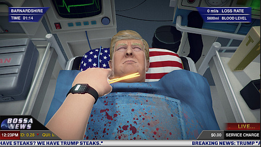 Surgeon Simulator Anniversary Edition’da da Trump’ın bu özelliğine dikkat çekilmiş ve bir parmağınızı dudağına dayayıp onu şşşt diye susturmanıza bir başarım verilmiş. Zekice… Ek olarak ameliyatın sonunda kendisine altın mı yoksa taş mı kalp verdiğinizin de istatistiği canlı olarak tutuluyor. Şu anda taş kalpli Trump önde. (Resme tıklayarak son sonucu görebilirsiniz.)