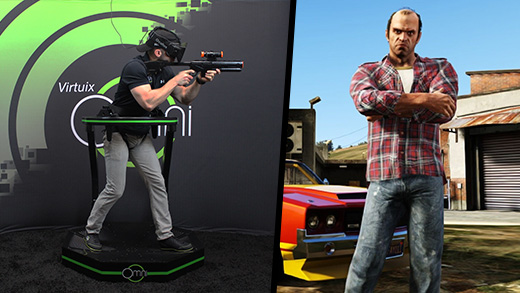 Bu bir yere kadar mümkün aslında. Ünlü sanal gerçeklik cihazları Oculus Rift ve Virtuix Omni ile GTA V çalıştırılmayı başarıldı. Oyunun kendisi Virtuix Omni'yi desteklemiyor tabii, ek bir yazılım kullanılmış.