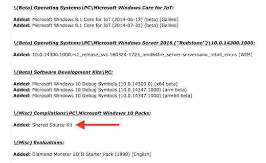 The Register'ın makalesine göre bu dosya paketleri BetaArchive.com'un üyelik gerektiren özel FTP sunucusuna yüklenmişti. Site bu durumu Microsoft yetkililerine sorduklarını ve şu cevabı aldıklarını da eklemiş: "İncelememize göre bu dosyalar gerçekten de Shared Source Initiative'in kaynak kodunun bir kısmını içinde bulunduruyor ve bu dosyalar normalde yalnızca donanım üreticilerine ve ortaklarımıza sunduğumuz dosyalar"