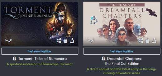 Paketin 15 dolarlık son kısmında ise Torment: Tides of Numenera (inceleme) ve Dreamfall Chapters: The Final Cut Edition bulunuyor. Bunların da Steam fiyatı 138 lira ve önceki oyunları da hesaba katarsak 434 liralık bir fiyat ortaya çıkıyor.