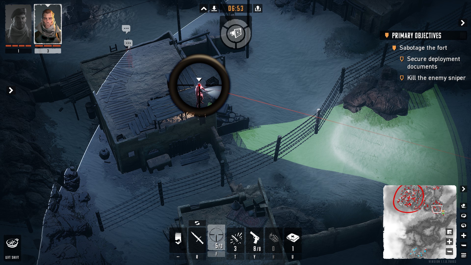 Oynanış açısından Commandos 1’e daha yakın bir oyun var elimizde. Geniş haritalar, görüş konileri, görevleri bitirmenin farklı yolları, kimsenin görmediği nöbetçiyi bulup zayıf halkadan başlayarak tüm düşmanları sistematik bir şekilde temizlemek… Ama elektrik direklerine tırmanmak, binaların içine girebilmek ve kamerayı döndürebilmek gibi Commandos 2’den ödünç alınan bazı şeyler de yok değil. Bununla birlikte düşman silahlarını alıp kullanmak, fırlatma kancası, mayın detektörü gibi şeyleri veya Natasha ve Paul gibi yeni karakterleri beklemeyin.