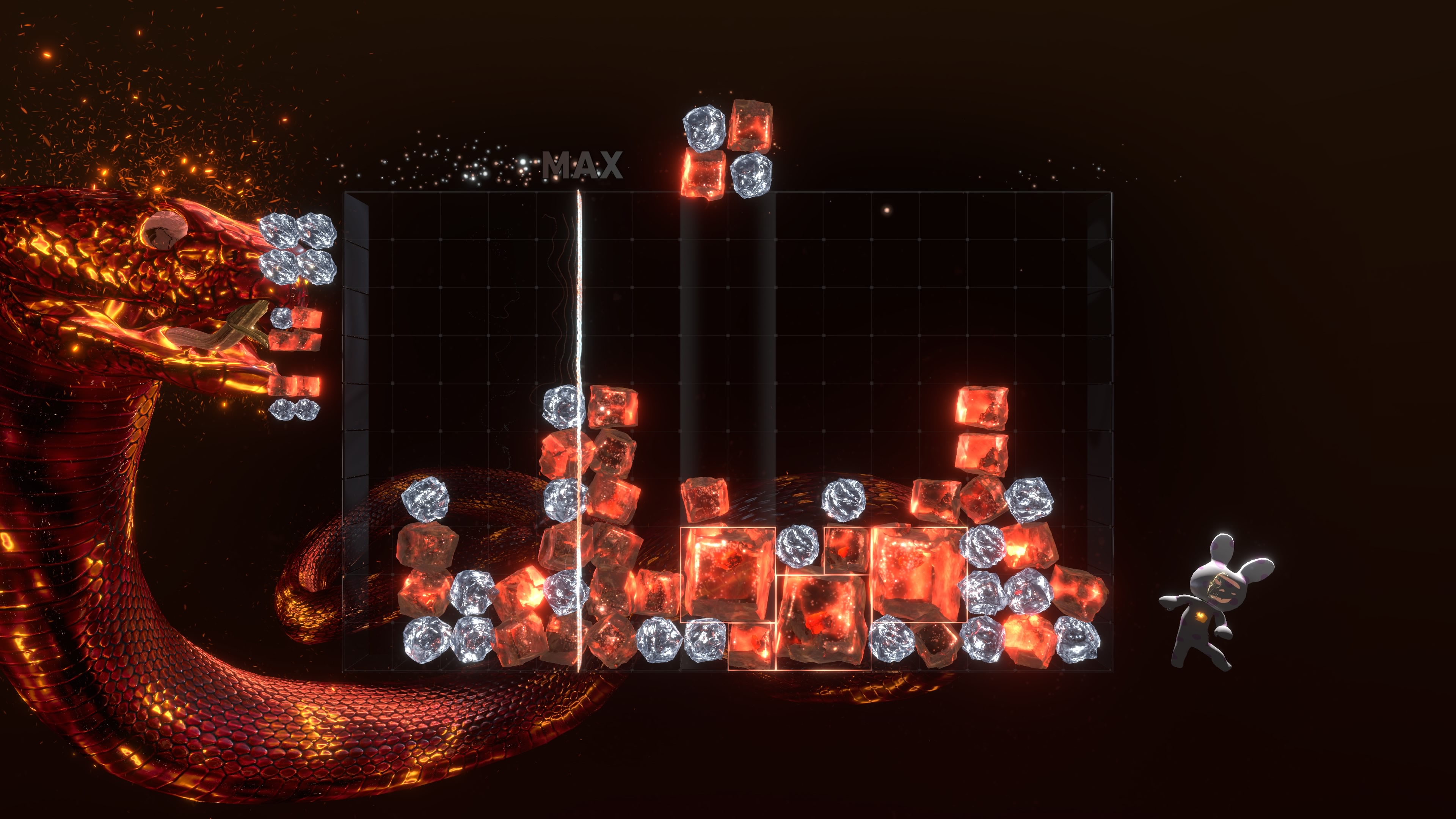 Sizi bu kaostan kurtarmak için de Tetris Effect’te de gördüğümüz “Burst” özelliği eklenmiş Lumines Arise’a. Belirli sayıda kare temizledikçe bu Burst-metreniz birikiyor, %50’yi geçtiği zaman kullanabiliyorsunuz ama %100’de olduğu kadar uzun olmuyor süresi. Burst modunu aktif ettiğiniz anda da aynı şekildeki kareleri birleştirerek kocaman bir kare yapıp, süre dolduğu zamanda da bu kare temizlenip, diğer şekildeki parçalar onların yerini alıyor, hem alanı temizleyip hem de güzelce puan toplamış oluyorsunuz.