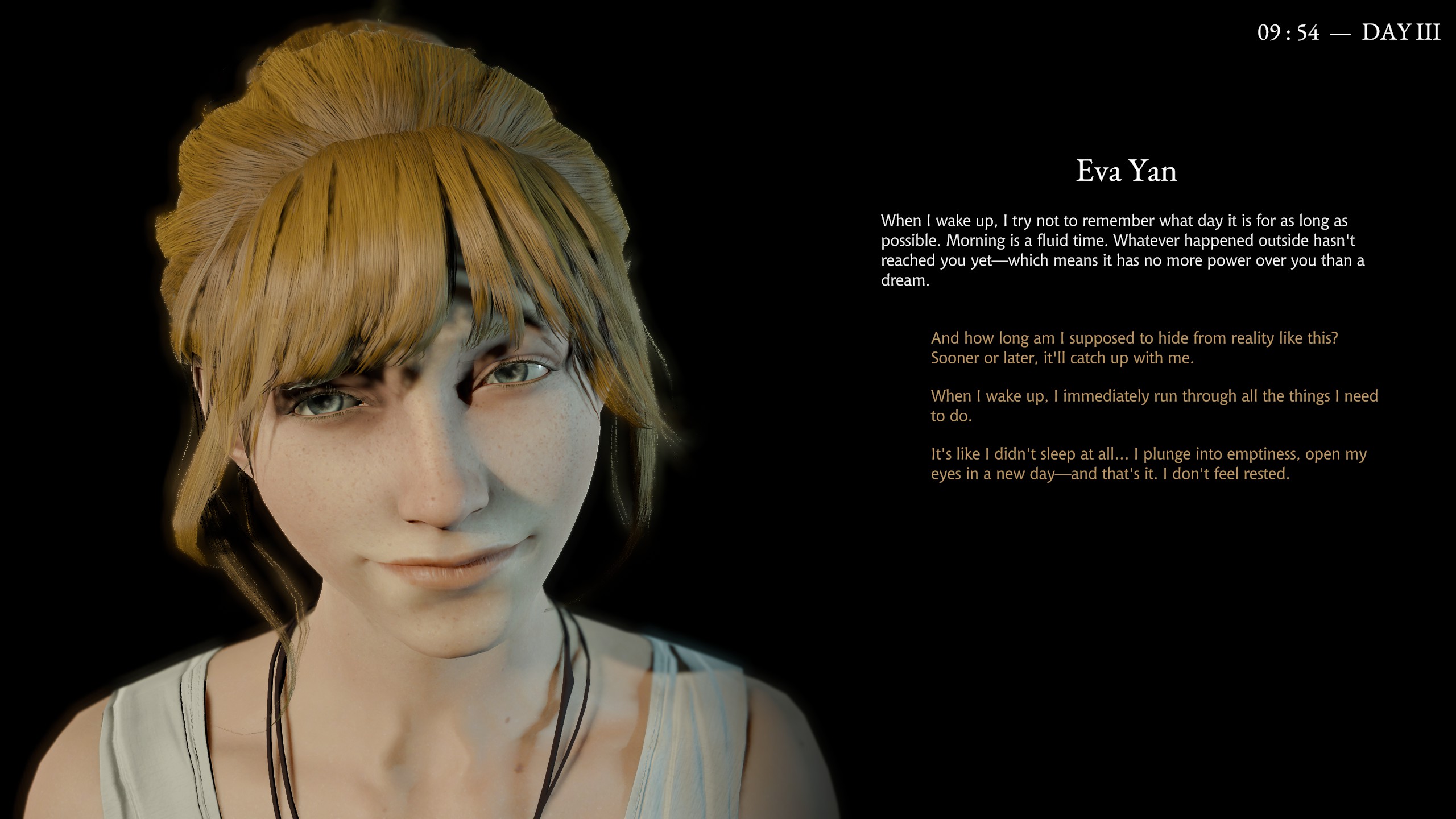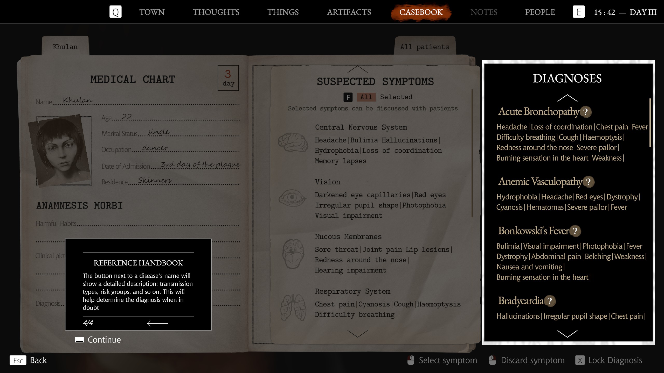 Oyunun mekanik tarafı bu şekilde. Önceki günlerde halkın canına okumadan salgını zapt etmek konusunda yeterli performans göstermezseniz sonraki günlere erişimimizin olmaması, mekanikleri öğrenip kaynaklar konusunda elinizi rahatlatmadan büyük resme rötuş çekmeye başlamayın istendiğinin bir göstergesi. Pathologic 2 muhteşem bir yazıma sahip olmasına rağmen bir denge politikası güdüyor ve anlatısının oyunu tamamen ele geçirmesine izin vermiyordu. Oyunu ne kadar iyi oynadığınız direkt olarak kaç karakteri hayatta tuttuğunuzu belirlediğinden, kötü oynadığınızda kendiniz hayatta kalsanız bile ölenler yüzünden hikâyeden parçalar eksiliyordu. Sorularınıza alacağınız cevapların da bazılarını kaybediyordunuz, bu da oynanış ve anlatı arasında ilginç ilginç bir denge kuruyordu. Son ana kadar da çetin bir mücadele hissi sürüyordu. Pathologic 3’te kayıt yedeklemeden geri alma şansınız olmayan bir tek şey haricinde, geri alamayacağınız bir hata yok. Oyunun anbean oynanışı da P2’deki yıldırıcı değil. Ayrıca oynanışla anlatı arasındaki denge bu oyunda korunmuyor. Oyunun zamanı kurcalamaya başlamanızı istediği noktaya geldiğinizde, yönetim ve hayatta kalma mekanikleri önemlerini yitirmiş oluyorlar ve dikkatinizi tamamen günlüğünüzdeki, sebeplerle sonuçlardan oluşan devasa örümcek ağına veriyorsunuz. Bu noktada oyunun anlatısı oyunu tamamen ele geçiriyor ve oyun oradan oraya koşup diyaloğa girdiğiniz bir yürüme simülasyonu gibi hissettirmeye başlıyor.