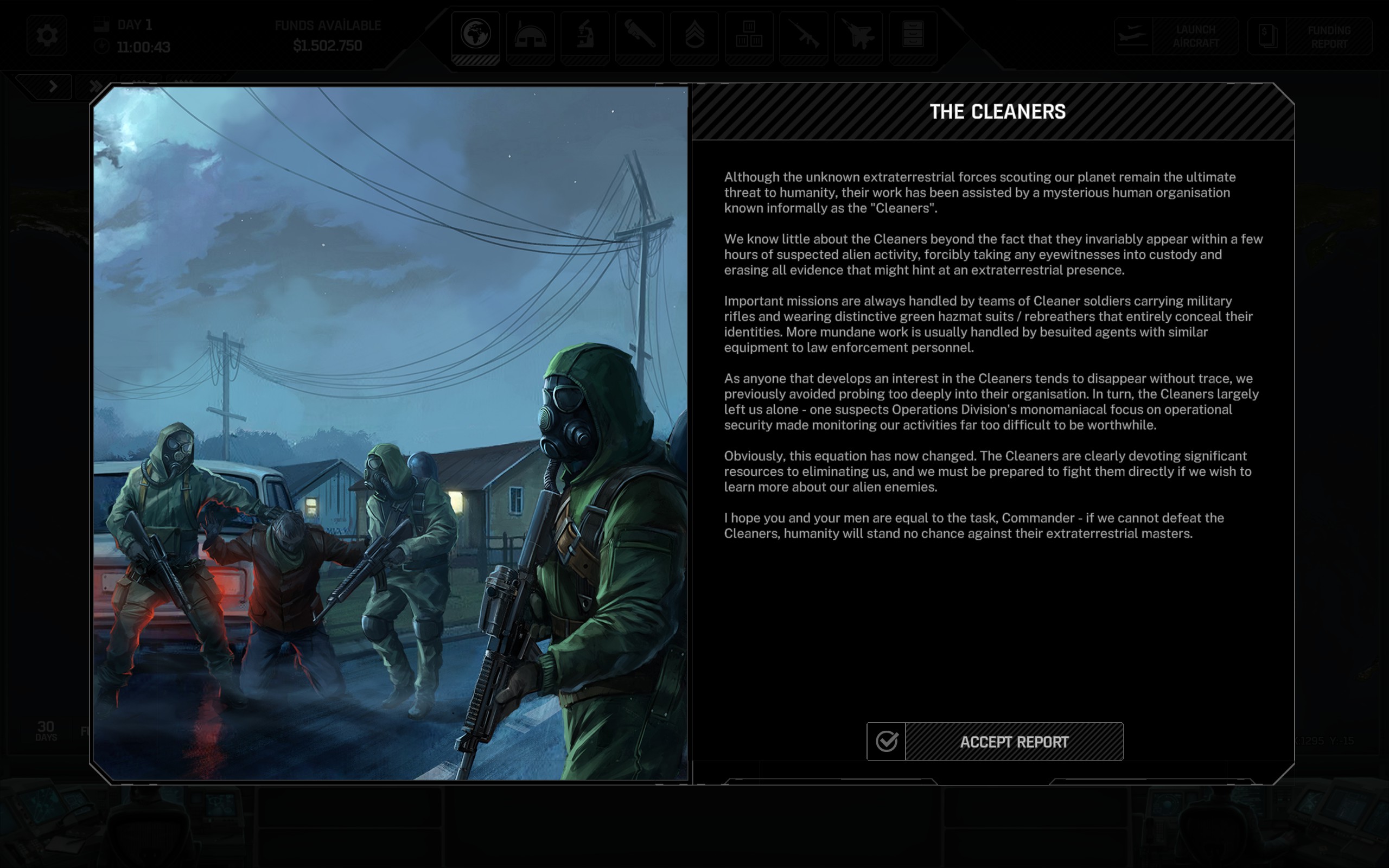 Bir yandan uzaylılarla bir yandan da uzaylıların izlerini silip toplumların yaklaşmakta olan istilaya karşı hazırlanmasını engellemeye çalışan işbirlikçileri “Temizlikçiler (Cleaners)” ile uğraşıyoruz. Bunun yanında uzaylı istilası başladığında layıkıyla direnebilmek için hazırlıklarımızı da eksik etmemeye çalışıyoruz.