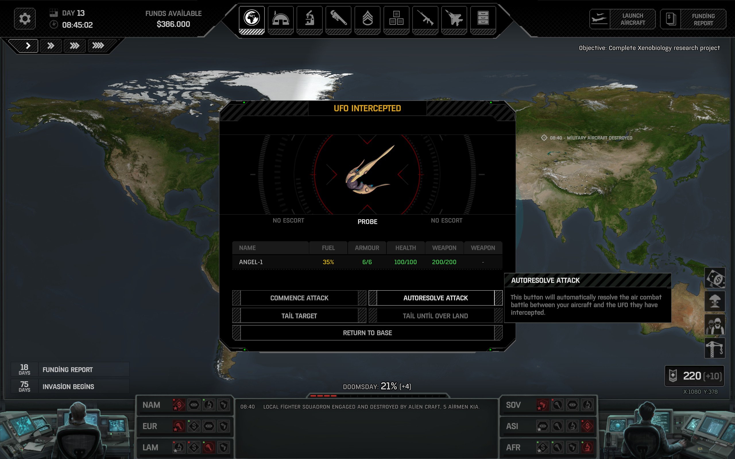 Arada bir radarınıza ufolar takılabiliyor, siz de hemen avcı uçağınızı havalandırıp peşine takılıyorsunuz. Bu it dalaşlarını otomatik sonuçlandırabilir veya bizzat çatışmaya girebilirsiniz. Ama bu çatışmalar o kadar da zevkli gelmedi bana açıkçası. Büyük oranda otomatik sonuçlandırıp geçmeyi tercih ettim.