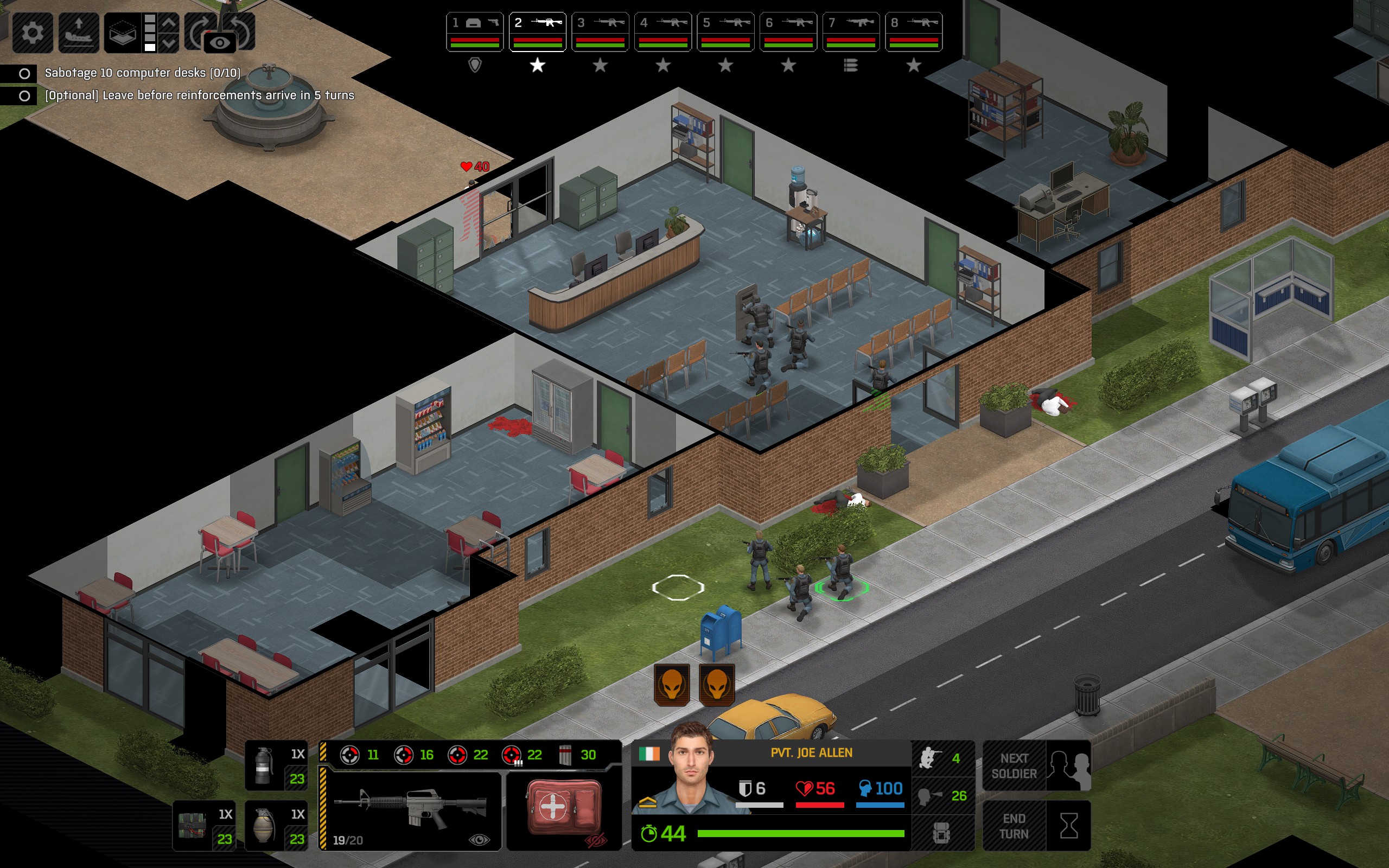 Tabii sürekli aynı kişilerle operasyona çıkmak gibi bir şansınız yok. İllaki birileri yaralanıyor ve belirli bir tedavi sürecinden geçmesi gerekiyor. Arada kaybedip arkasından yas tuttuğunuz askerleriniz de oluyor. Dolayısıyla bütün yatırımı belirli isimlere yapmak yerine dengeli bir yol izleyip alternatifler de oluşturmak gerekiyor.