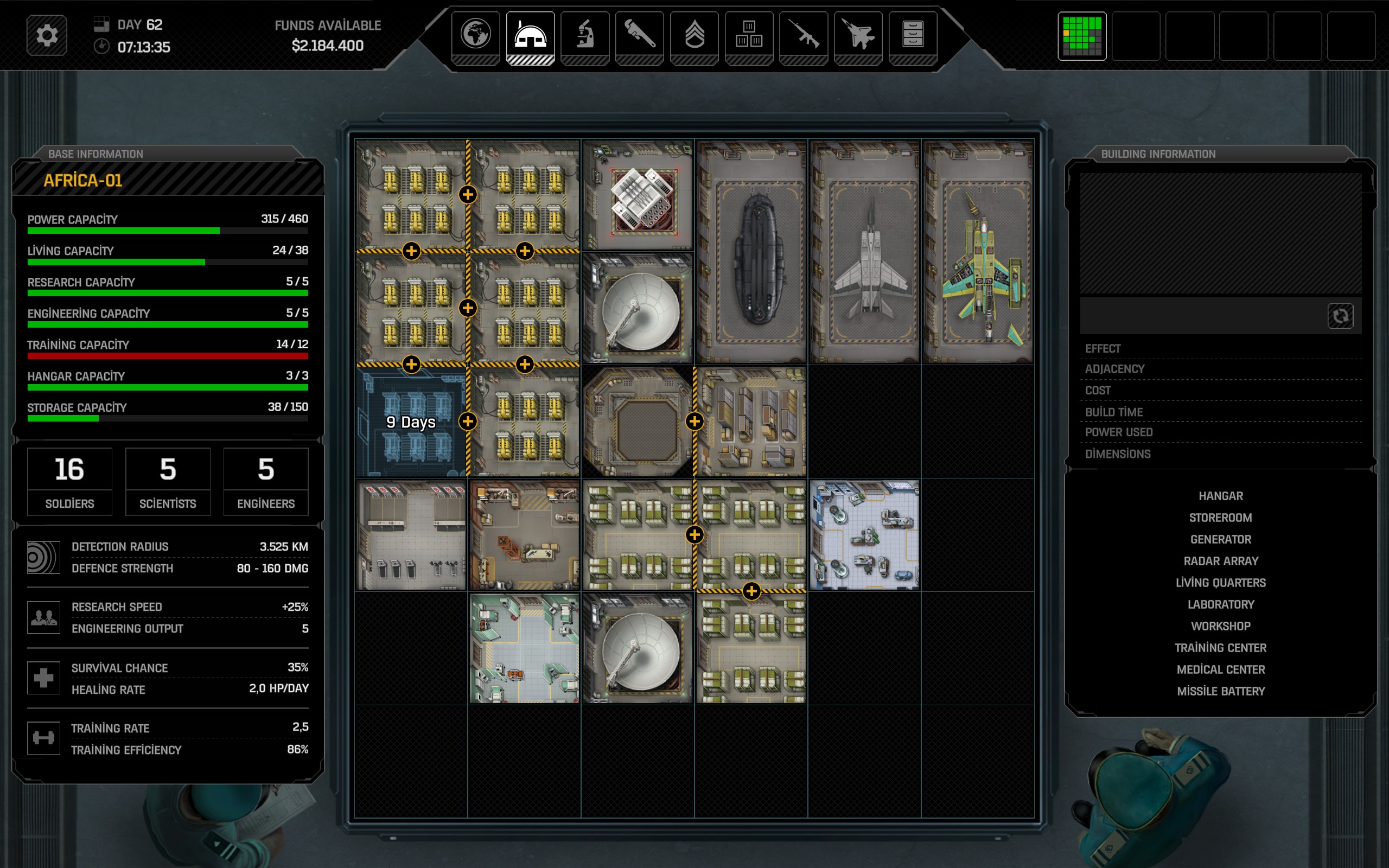 Üs ve personel yönetimi kısmında, mevcut üssünüze yeni birimler inşa edebiliyor, araştırmalar yapabiliyor, araştırmalar sonucunda elde ettiğiniz bilgilerden de istifade ederek silahlar, zırhlar, savaş araçları, uçaklar vs. üretebiliyorsunuz. Farklı coğrafyalarda yeni üsler kurarak dünyanın daha büyük bir kısmını kapsar hale gelebiliyor ve daha geniş coğrafyalarda operasyonlar gerçekleştirebiliyorsunuz.